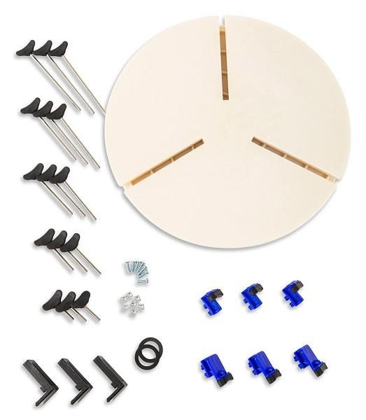 Classic trimming chuck for re-centering leather hard pots on the potters wheel. The various Sliders and Rod sizes move in simultaneously to hold your pot right on center and accommodate various shapes and sizes of pottery.