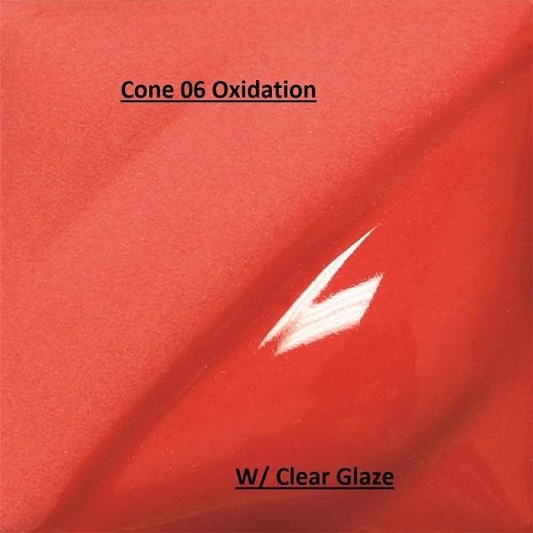 * Radiant Red Velvet Underglaze is a bright scarlet color that is vivid at cone 05, deepens at cone 5, and becomes slightly glossy and a deep fire-engine red at cone 10.