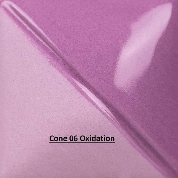 - Remains purple – shifts to a warmer hue. Recommended clear glaze is SW-001 Stoneware Clear: Color concentration occurs.