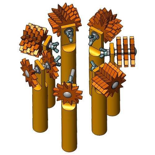 The Steve Tool texture roller can be configured into many variant designs by rearranging the disks over the shaft in assorted patterns. Loosen the nuts, adjust the disks into alternate locations & retighten the nuts. It’s just a wheel, so let it spin.
